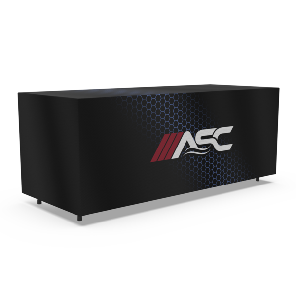 Our 3-sided fitted table cover comes with the same quality fabric and print as our standard cover but has an open back allowing for easy access to storage underneath the table. Available in standard 6′ and 8′ sizes.