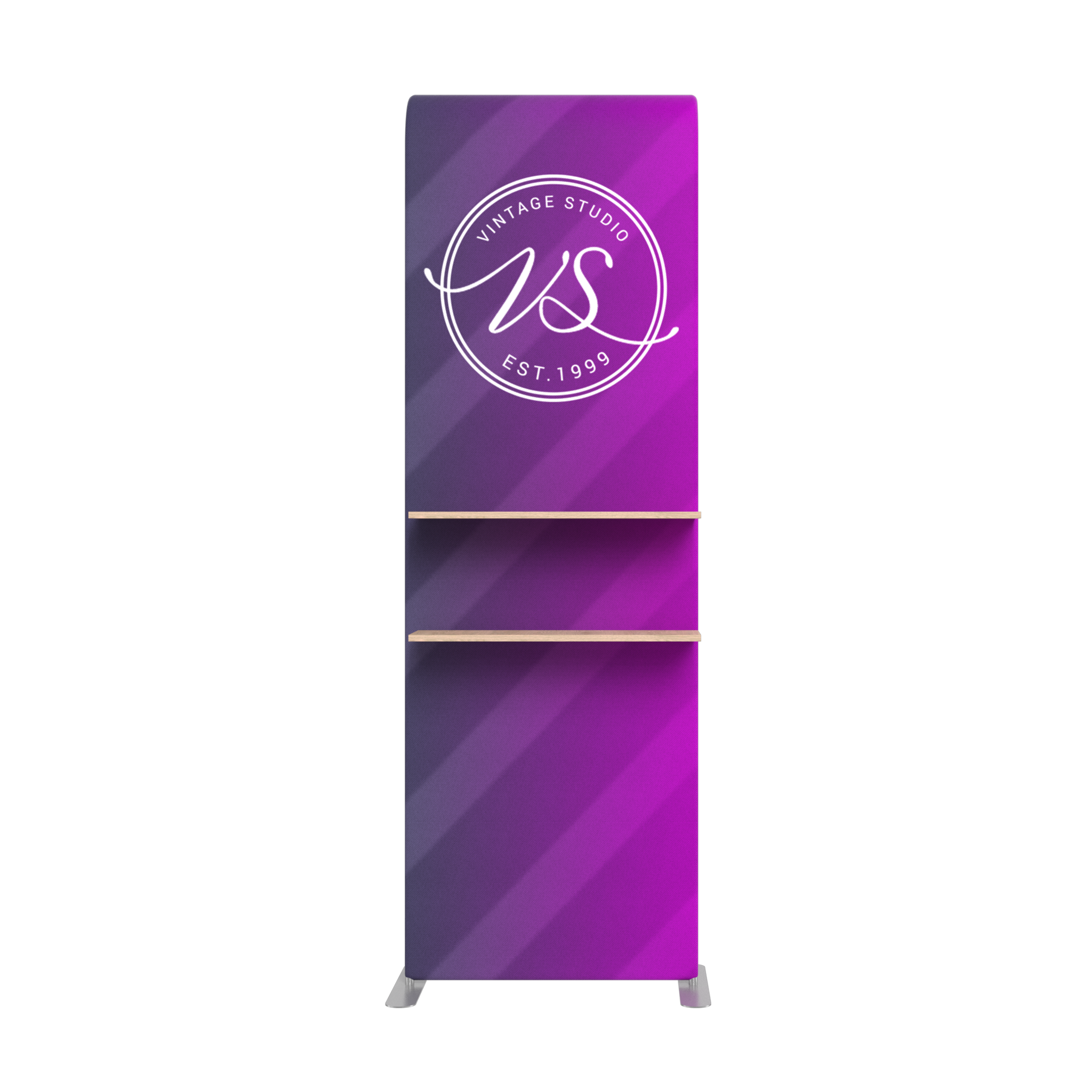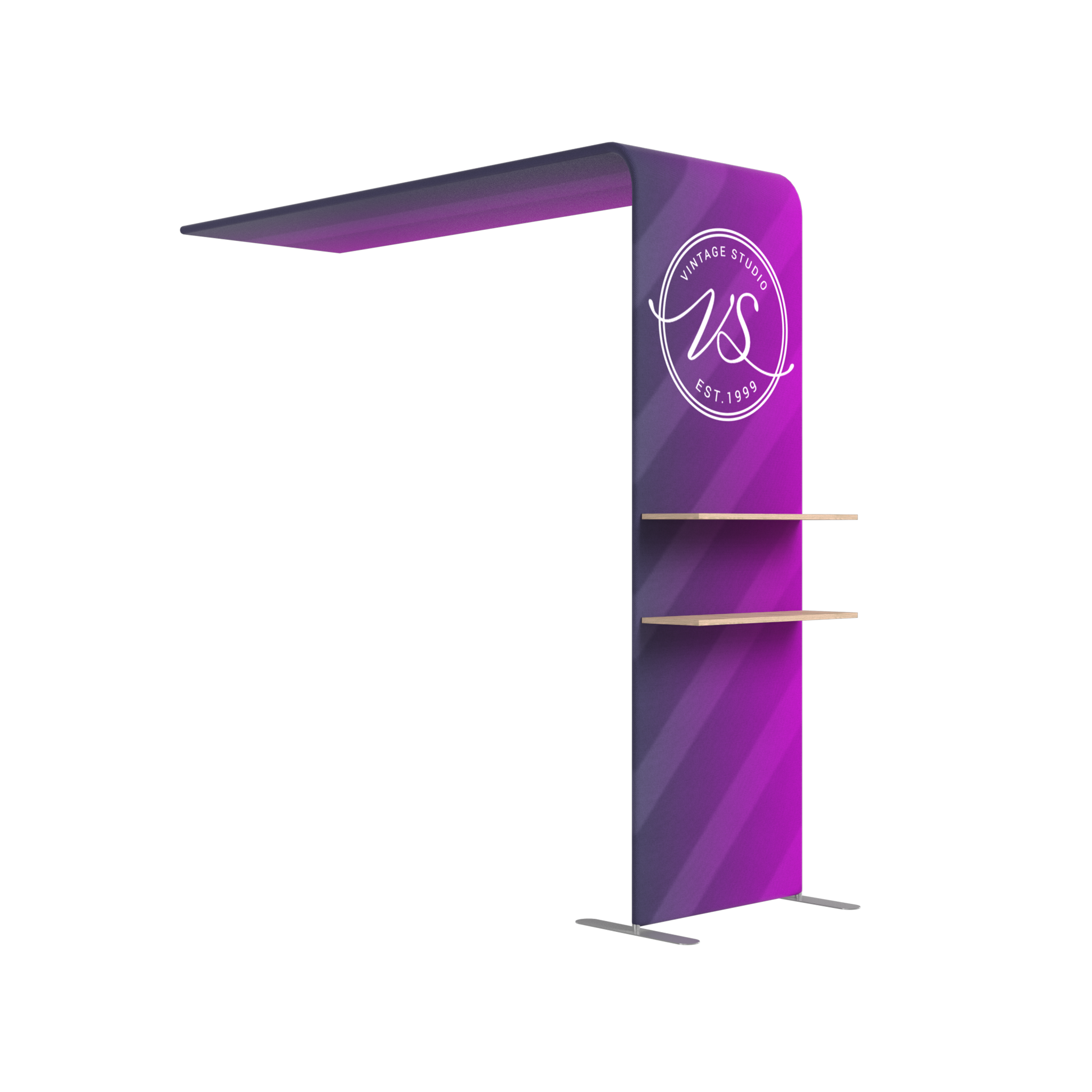 Our Premier Arch Shelves provide you with a place to display product on the front of our arch display. The shelves are easy to assemble and snap on to the sides of the display adding a functional design element to any trade show booth or display.
